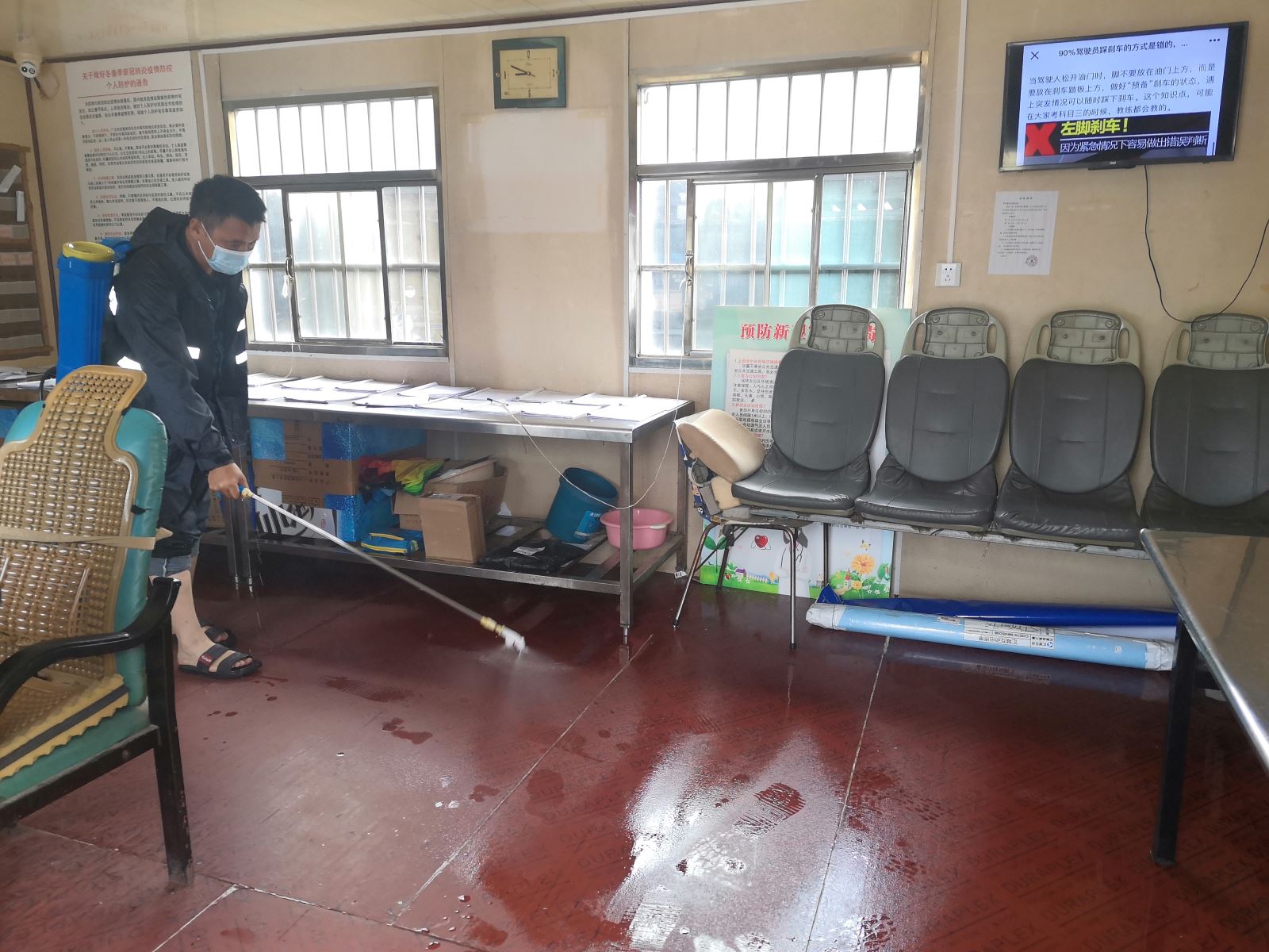 具體措施為,一是各場站按照疫情防控相關標準,添加配比好的消毒液,對車棚、飲水間及高頻次接觸的物品等進行消毒,每2-3小時消毒一次。二是對辦公場所,人員密集區域進行消毒,要求每天不少于4次。三是駕駛員對車輛執行一趟一消毒,打開門窗通風,車內垃圾一趟一傾倒,收班后對車內進行全面消毒,特別是刷卡機、座位處、扶手、欄桿、空調出風口處等部位。四是所有員工每天到崗接受體溫檢測,并做好臺賬登記。