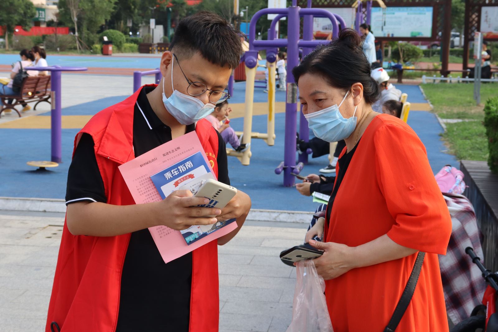 本次活動地點(diǎn)設(shè)在海州區(qū)新海花園社區(qū),活動現(xiàn)場擺放桌椅、懸掛主題活動宣傳橫幅,15名志愿服務(wù)者向社區(qū)居民發(fā)放公交出行宣傳周活動倡議書、2021年公交出行手冊200余份、公交滿意度調(diào)查問卷46份。
