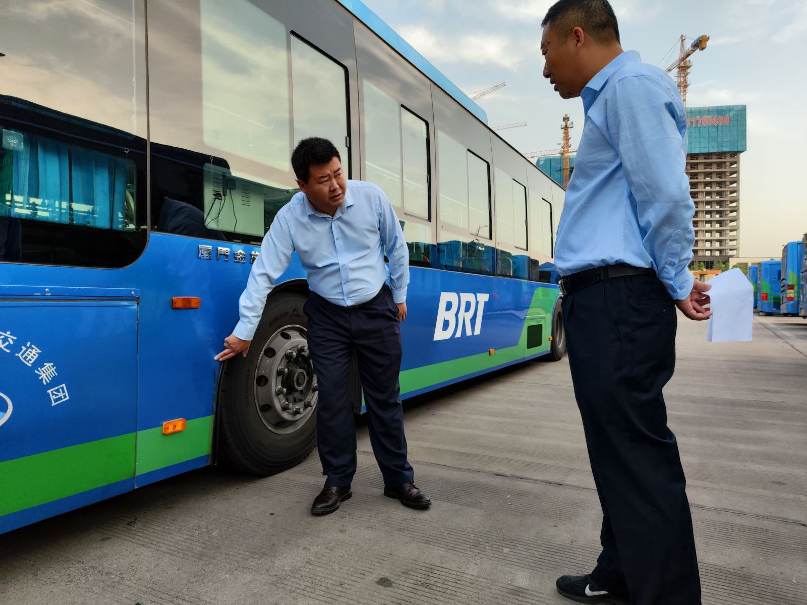 6月1日清晨五點半,快速公交事業部全體領導班子成員帶領各科室負責人、分公司管理人員分別在東、西城場站對車輛及場站進行全面綜合大檢查。本次安全檢查共檢查運營車輛198臺,分別對防疫消毒表及一日三檢表的填寫情況、滅火器、車內外衛生情況、安全設施設備、車廂內標識、駕駛員等細節進行逐項檢查,檢查中發現個別車輛衛生死角不干凈、車輛存在邊燈不亮、電池倉油污多等情況,分公司立即反饋并在規定時間整改到位。對駕駛員文明服務、安全操作、路口限速進行再交代、再提醒;督促駕駛員做好危險品的查堵工作和反恐維穩工作并做好疫情防控和安全運營兩手抓。