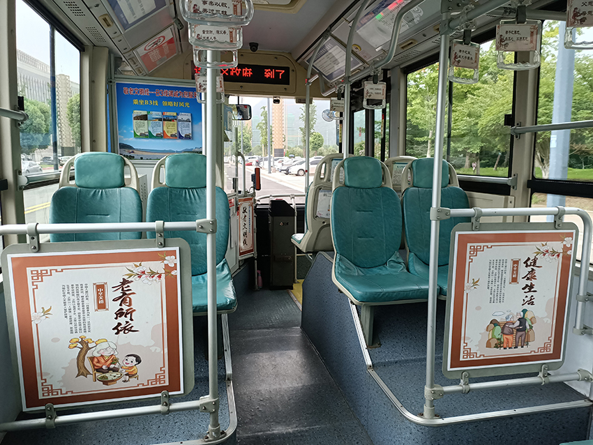 快速公交事業部精心設計,裝飾并改造B3線車輛,在車廂內設置敬老專座、愛心按鈴、愛心手冊、愛心雨傘等物品;在線長張金霞駕駛的車廂打造樣板車,張貼敬老愛老標語,敬老孝親故事,健康知識標牌等;“敬老我先行 助老獻真情”“老有所依 常回家看爸媽”“關愛老人 幸福陪伴”等標語醒目可見,細節之處彰顯出公交敬老愛老情懷。同時事業部對B3線駕駛員進行了全面服務培訓,要求駕駛員提高服務標準,以充分的耐心和熱情服務每一位乘客,力爭每位駕駛員在服務中都能達到“敬老文明示范崗”的標準。