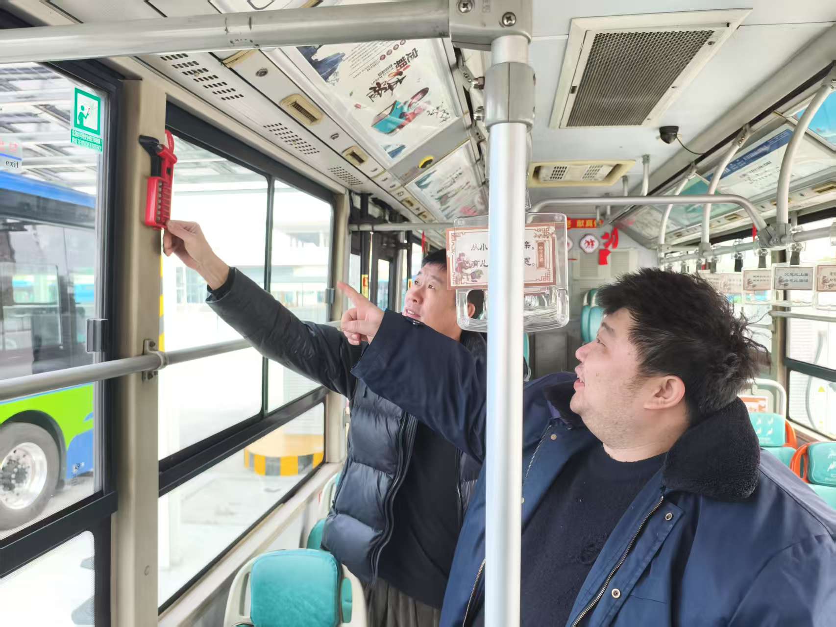 此次檢查工作由分公司安全副經理帶隊,帶領安管人員對所屬運營公交車輛的一鍵報警、破玻器、滅火器、破玻錘等安全設施設備進行了全面細致的排查,確保公交車輛安全設施設備數量充足且性能有效。