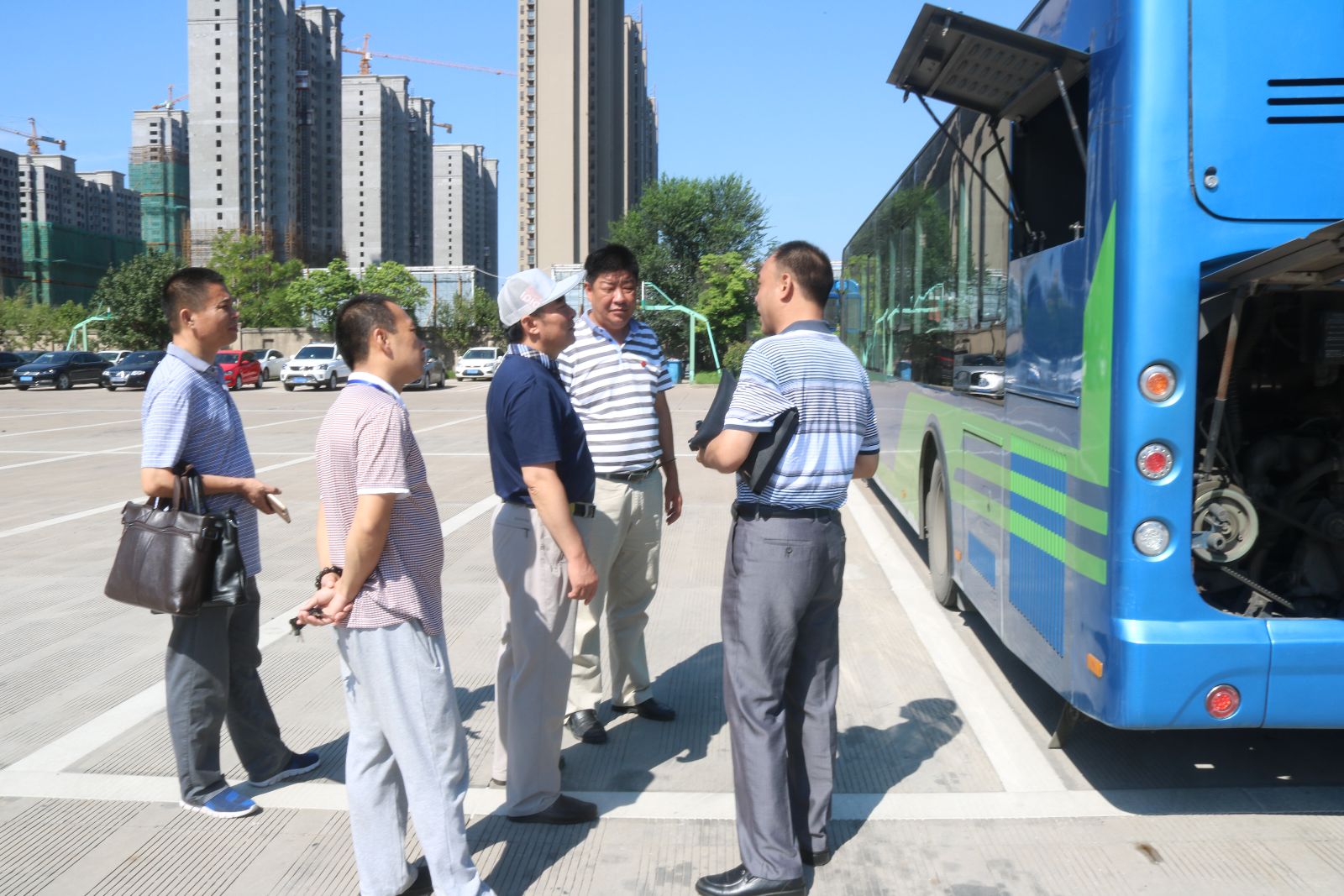 檢查組一行在了解公司G20峰會期間安全工作落實情況后,又來到現場對公交車應急錘、滅火器配備數量及分布位置、LNG車輛氣瓶、發動機艙滅火裝置、線路等安全技術狀況進行了檢查,并詢問駕駛員應急處置相關知識。