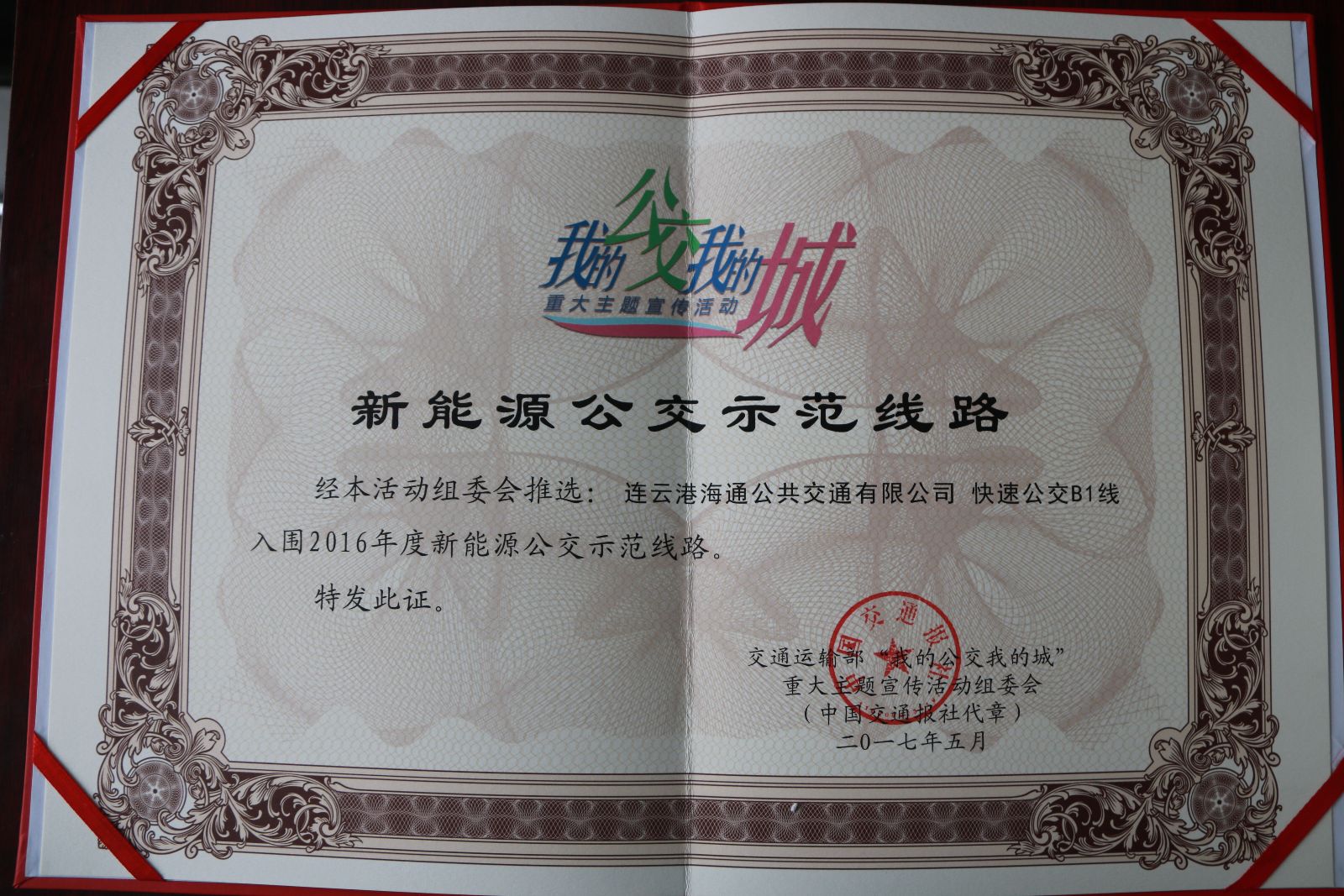 經(jīng)活動組委會初選、實地調研、媒體展示、社會公示、專家組嚴格審查推選等環(huán)節(jié),連云港市公交集團快速公交B1線榮獲“新能源公交示范線路(入圍)”,其車型榮獲“新能源公交示范車型”。