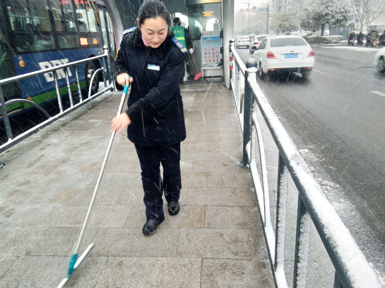 同時,公交車駕駛員、站務(wù)員也提前到崗,檢查車輛和站臺所有設(shè)施設(shè)備,清掃積雪,保障市民冬季乘車安全。