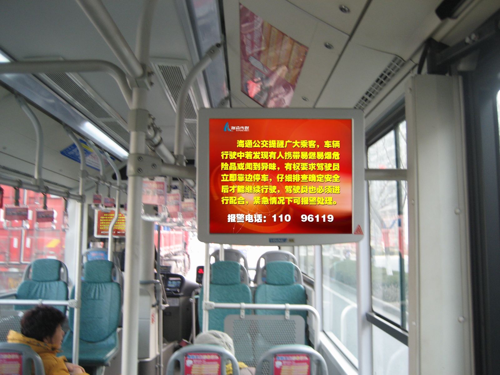 為了給廣大乘客營造一個安定、和諧的春運出行環境,確保乘客乘車安全,海通公交與連云港市公安消防支隊聯合開展消防知識宣傳活動。公司為迅速有效開展好宣傳活動,利用154臺BRT車輛、185臺常規公交車輛上的車載電視滾動播放《身邊的消防安全常識》公益片,提醒乘客禁止攜帶危險品乘車,自覺維護公共消防安全。在參加春運的616臺公交車上安裝了1000張消防知識公益宣傳卡片,以圖文的形式生動地宣傳消防安全防火知識。