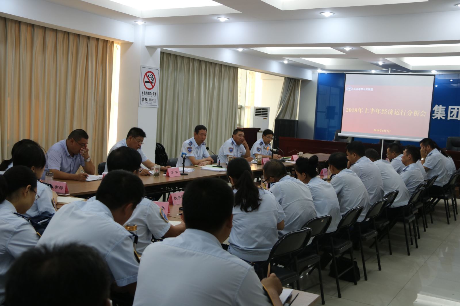 為全面貫徹落實年度目標任務部署,高質、扎實推進重點任務落地,8月7日下午,公交集團在三樓會議室召開2018年上半年經濟運行分析會,對上半年工作全面梳理回顧,查找癥結,謀劃下半年工作思路。集團領導班子成員、機關全體中層人員和各權屬單位領導班子成員參加了會議。