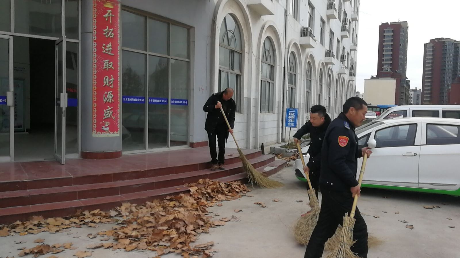 華威停車場場站西北、西南角正對大門,入冬以來,兩處周邊區域的枯枝落葉散落遍地,雜草叢生,嚴重影響著公司對外形象。工作人員通過使用鐵锨、掃帚等清潔工具,將場地中的落葉、碎磚頭進行了集中清理,對干枯和衰敗的植物進行處理和拔除。大家忙碌了近兩個小時,個個累的滿頭大汗,臉上卻掛著笑容。