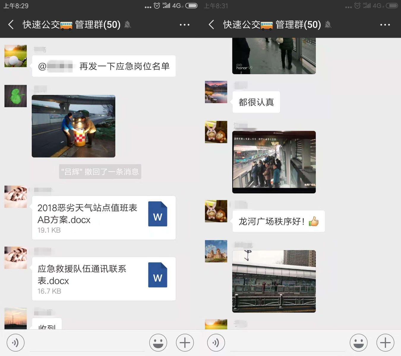 凌晨,權屬單位在微信群里對公交線路運營工作進行調整分配