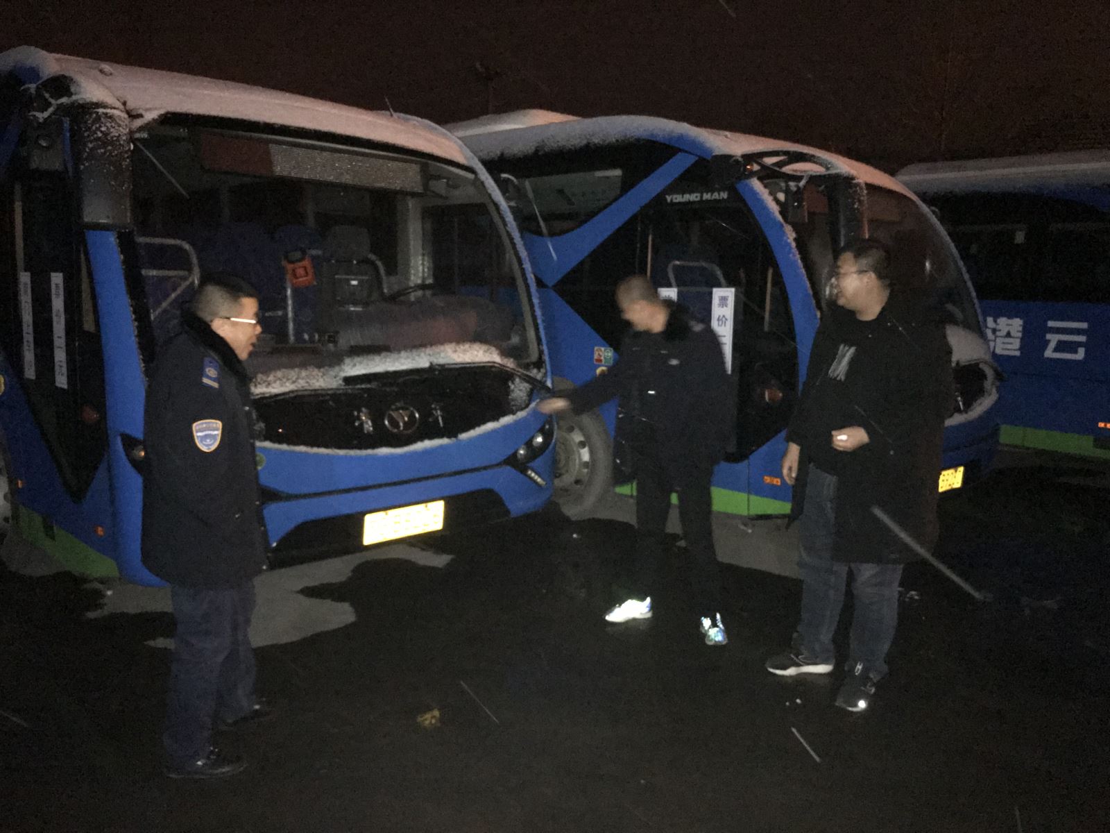 1月9日晚,雪花紛紛揚揚飄落,給港城帶來美景的同時也讓路面積雪結冰,為保障車輛順利出場及市民乘車安全,公交集團迅速啟動惡劣天氣應急保障方案,就車輛準備、營運調度、人員安排、安全疏導乘客等方面提前部署,周密安排。