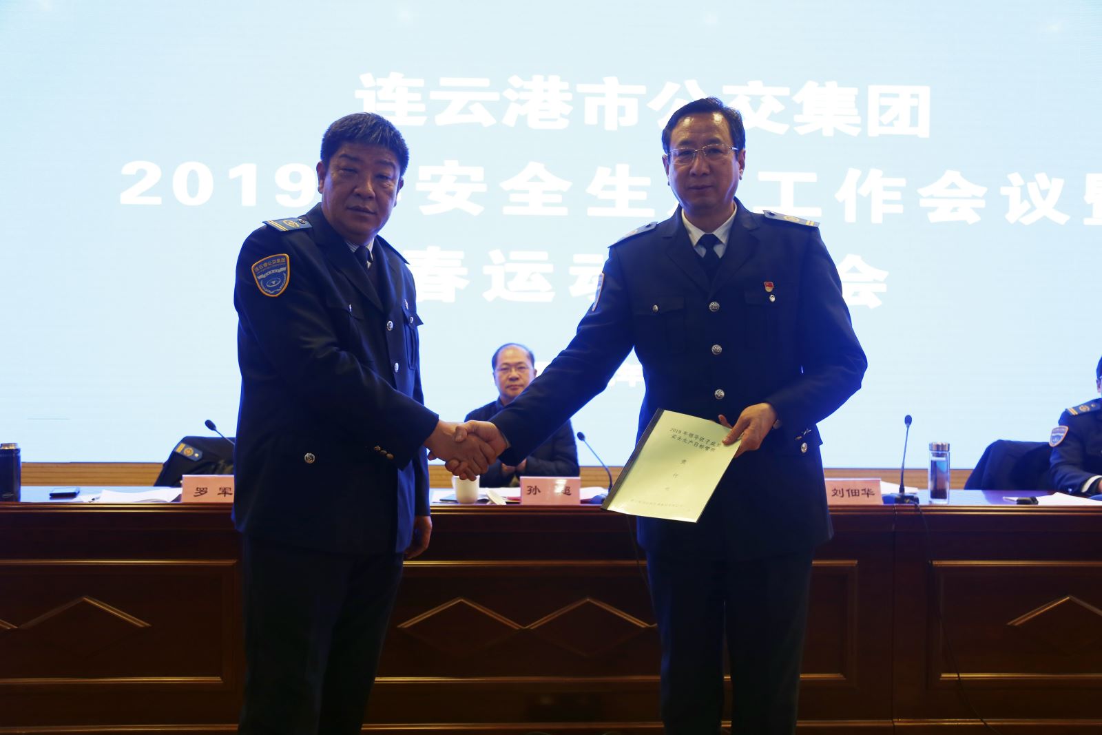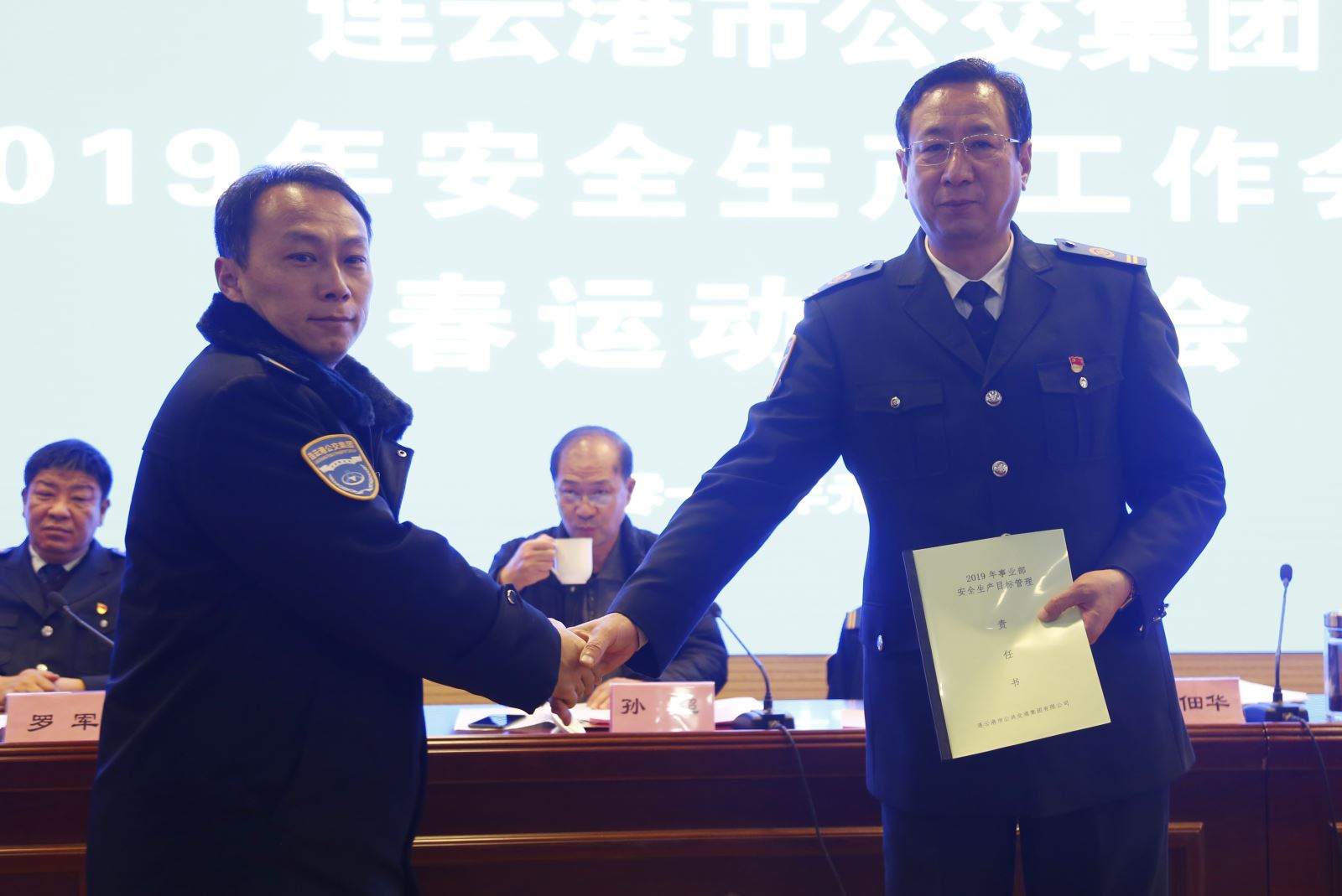會上舉行了2019年度安全目標責任書遞交儀式,依次由羅軍、各事業部主要負責人向公交集團黨委書記、總經理劉佃華遞交了《2019年安全生產目標管理責任書》。