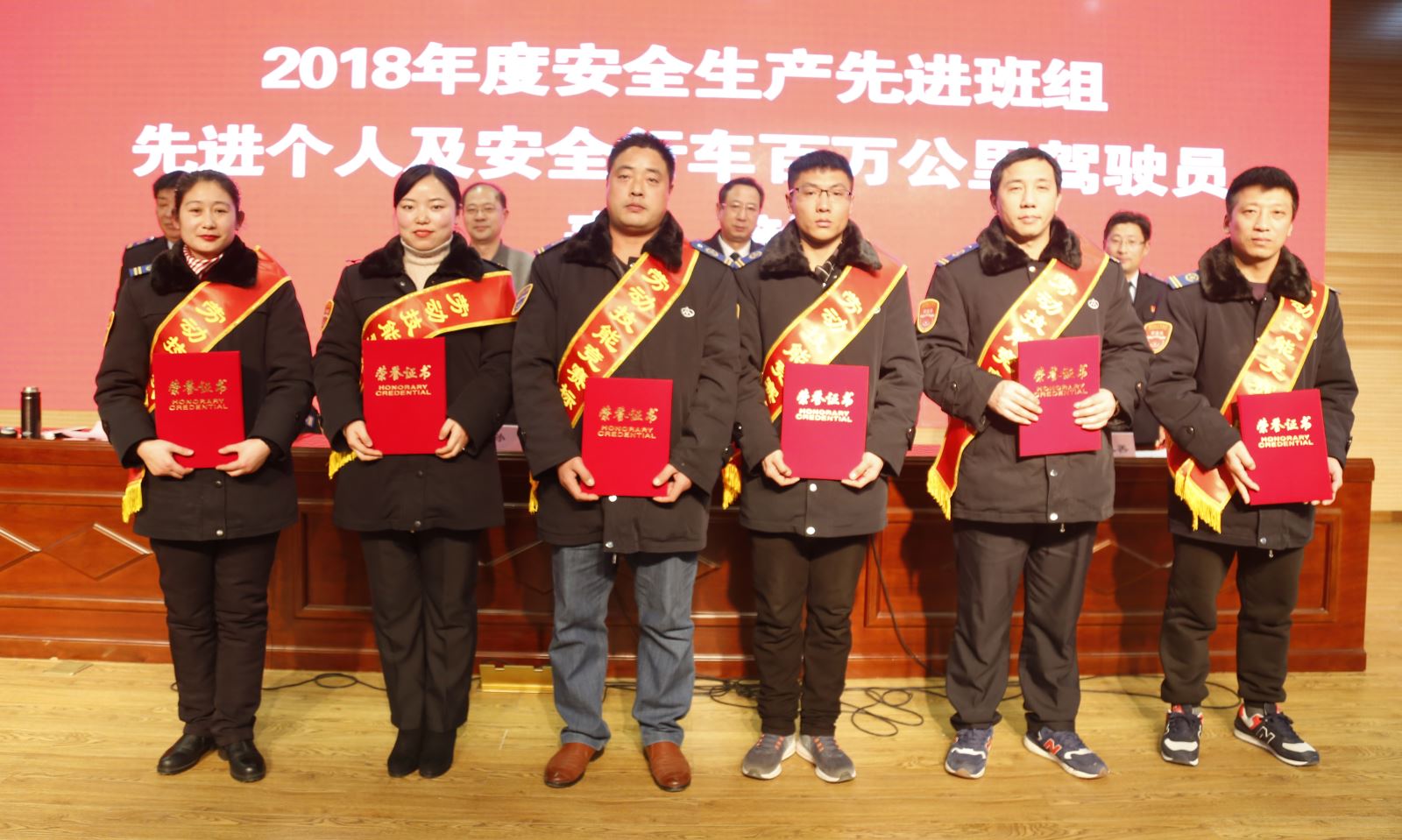 劉永善通報2018年安全生產目標管理考核結果,要求各事業部認真總結工作經驗,鞏固成績,克服不足,在新的一年里,加強對安全生產工作的組織領導,全面落實安全生產目標管理任務和安全保障措施,確保集團安全生產形勢的持續穩定。同時還宣讀2018年安全生產先進班組、安全生產先進管理者、安全生產先進工作者及安全行車百萬公里駕駛員的表彰決定,授予B11線等10個“安全生產先進班組”榮譽稱號、張雨培等7名“安全生產先進管理者”榮譽稱號、田生勤等8名“安全生產先進工作”者榮譽稱號,曹汝年等10名“安全行車百萬公里駕駛員”榮譽稱號,號召全體干部職工要以受到表彰的先進為榜樣,銳意進取。