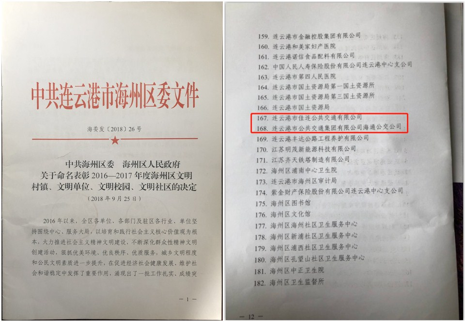 近日,我區、市文明單位評選活動揭曉,公交集團快速公交事業部、公交集團公交事業一部、公交集團公交事業二部被評為“2016-2017年度連云港市文明單位”,公交集團快速公交事業部、公交集團集團公交事業一部、公交集團公交事業二部、公交集團經營發展事業部被評為“2016-2017年度海州區文明單位”,受到市委市政府、區委區政府通報表彰,標志著公交集團精神文明創建工作邁上新臺階。