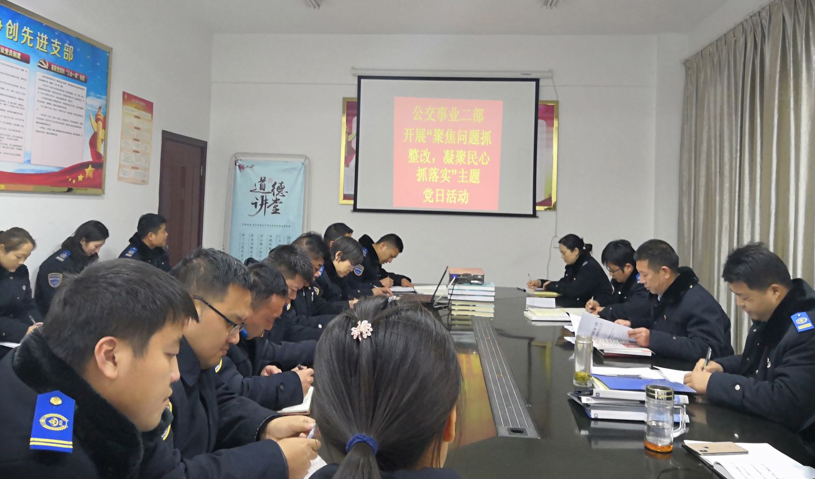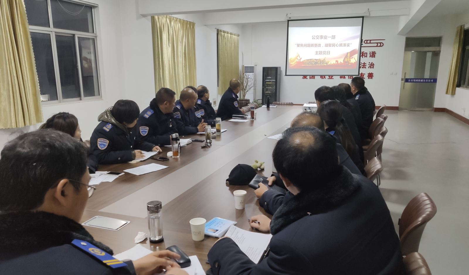 為深入開展“不忘初心、牢記使命”主題教育,進(jìn)一步學(xué)習(xí)貫徹習(xí)近平新時(shí)代中國特色社會(huì)主義思想和十九屆四中全會(huì)會(huì)議精神,公交集團(tuán)各事業(yè)部黨總支、黨支部開展了“聚焦問題抓整改,凝聚民心抓落實(shí)”主題教育活動(dòng),全體黨員、入黨積極分子參加活動(dòng)。