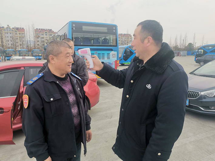 設立體溫檢測點,組建消毒隊伍,從即日起每天第一班車發車前對每一位在崗駕、站、安檢人員逐人過關實施體溫檢測,如有發燒等癥狀立即待崗觀察,并做好臺賬記錄,確保駕、站、安檢人員健康上崗。