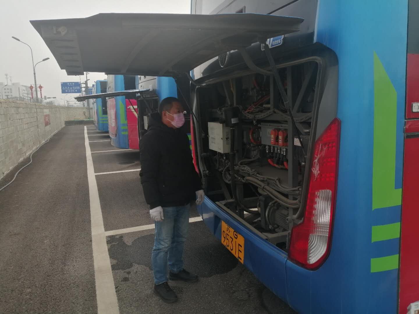 現場,車輛維護檢查工作主要從三個方面開展,一是對待運營車輛外觀、胎壓、電池、電路、管路、儀表、制動系統、電控設施設備、充電設施等通過“看、聞、測、試”等方法進行全面的安全技術檢測,排除一切安全隱患。二是對車輛安全設施設備、車輛消毒處理情況進行檢查,如實進行登記,確保安全設施齊全、有效。三是對車輛進行動態試車,確保車輛運行狀況良好;主要檢查車輛的電量是否缺失、電瓶是否缺電、防凍液是否缺失等方面,并同時對車輛的輪胎、輪胎螺絲、半軸、電器線路、電瓶艙、燈光、電子路牌及扶手、拉手、座椅、倒車鏡等車容車貌等方面的技術狀況進行重點排查,發現故障隱患及時進行排除。