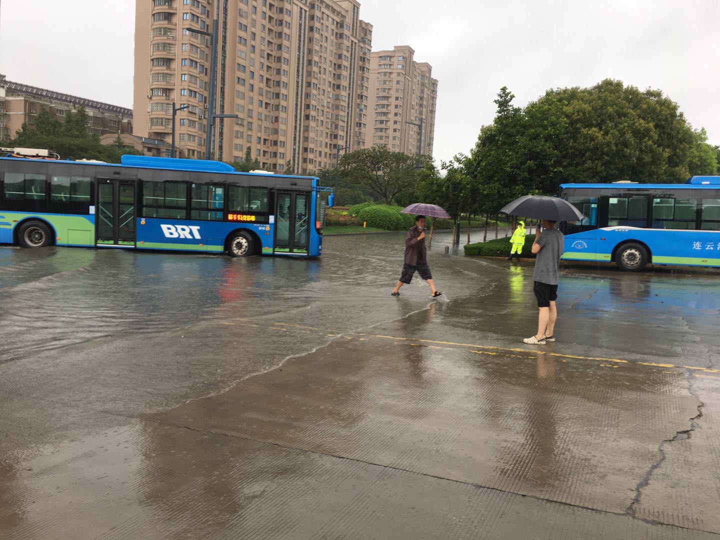 針對市氣象局發布的雷暴橙色預警信號,預計連云港7月11夜里到12日我市將有一次強降水天氣過程,累計雨量可達到暴雨,局部大暴雨,局部地區伴有短時強降水等強對流天氣。雨情就是命令,快速公交事業部領導班子及相關部門積極應對、靠前指揮,立即按照特殊天氣啟動應急預案,快速公交人迅速行動起來, 管理人員到源頭站點,場站指揮發車,到受淹場站及時排水,在積水嚴重路段安排觀察哨、安全崗,確保線路安全運行。全體員工眾志成城,全力以赴確保快速公交運營生產,為廣大市民出行保駕護航!